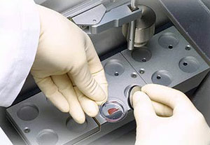 3D Precision Chuck secures the Specimen Holder to the Microtome. Dial indicators show the exact angle of the Chuck. The guide marks show the exact orientation of the Specimen Holders in the Chuck |